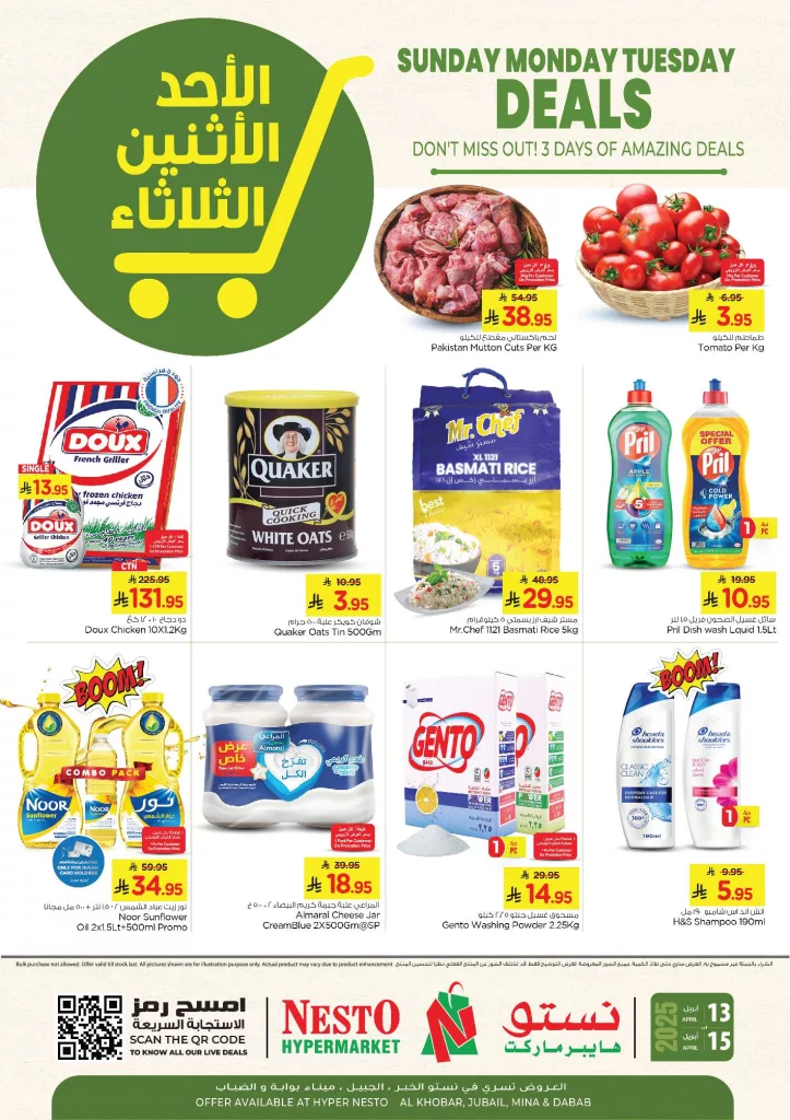 عروض نستو الدمام الاحد 13 ابريل 2025 ترحب بكم بتشكيلة مميزة من التخفيضات الحصرية على مدار ثلاثة أيام فقط لتشمل كافة احتياجات الأسرة من خضروات وفواكه طازجة ولحوم مختارة بعناية مع أسعار منافسة ومناسبة للجميع تلبي حاجات المستهلك اليومية بجودة عالية وتوفير كبير