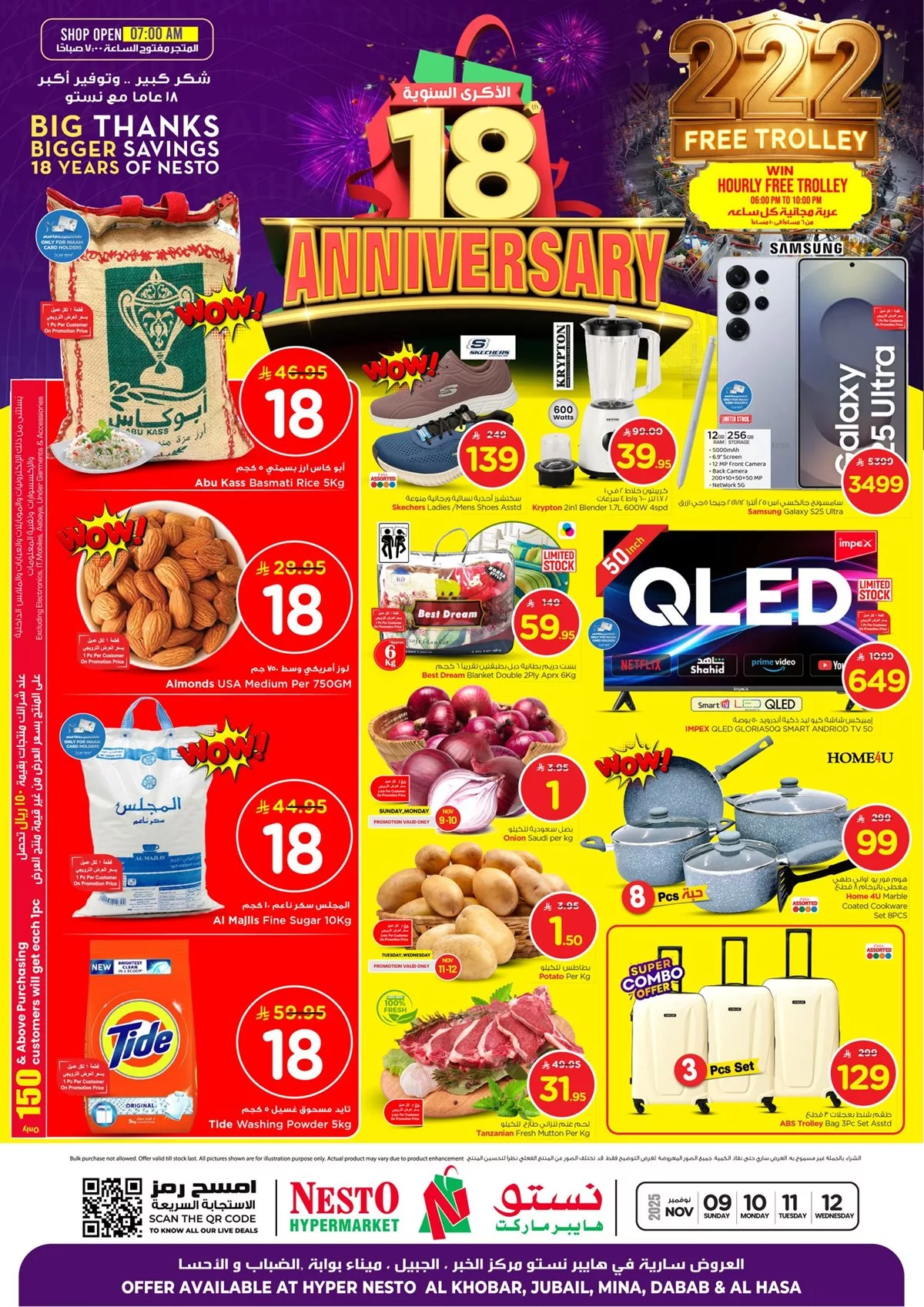 نواصل معاكم احدث عروض نستو الدمام بتاريخ الاحد 18 جماد الاول 1447هـ و بتشمل الخضار والفواكه الطازجة مثل الأفوكادو والتفاح والرمان بالإضافة إلى اللحوم الطازجة المقطعة والدواجن المحلية مع تشكيلة من الأسماك الطازجة والمجمدة وتشمل أصنافا من المخبوزات الطازجة كما يوجد تشكيلة مميزة من الأجبان والأرز والمكسرات