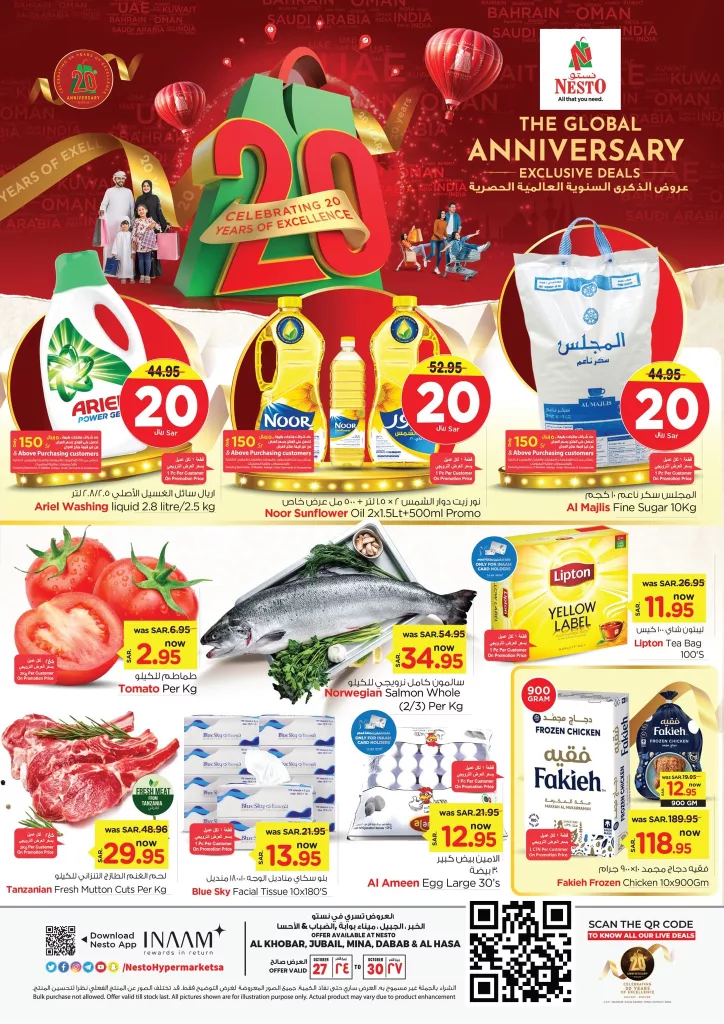 تقدم عروض نستو الدمام أيضا خصومات مميزة على منتجات التنظيف المنزلية والمواد التموينية الأساسية مثل سائل غسيل أريال وزيت دوار الشمس نور وسكر المجلس مما يمنح المتسوقين فرصة للحصول على منتجات ذات جودة عالية بأسعار مخفضة بشكل كبير.