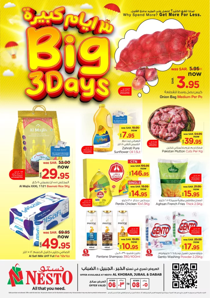 بالإضافة إلى ذلك عروض نستو الدمام تشمل خصومات كبيرة على مجموعة متنوعة من المواد الغذائية مثل الأرز البسمتي و الزيوت واللحوم كما تتوفر منتجات الألبان والجبن مثل الجبن المبشور وكريمة الطبخ بأفضل الأسعار بالإضافة إلى تشكيلة واسعة من الفواكه والخضروات الطازجة.