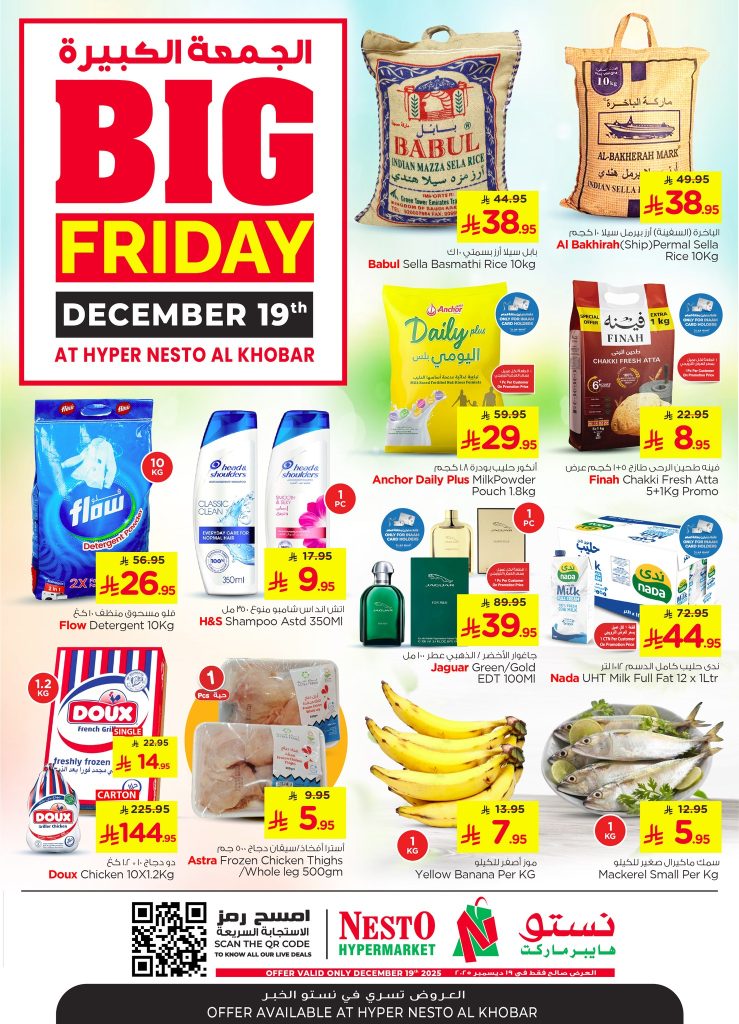 عروض نستو الدمام لنهاية الاسبوع الجمعة 19-12-2025 تحتوي علي أكياس الأرز بأحجام مختلفة وأنواع معروفة إضافة إلى حليب البودرة والدقيق والعصائر كما تتضمن العروض مواد استهلاكية مهمة مثل مساحيق الغسيل والشامبو والدواجن المجمدة إلى جانب الخضروات والفواكه الطازجة باسعار مميزة مناسبة للجميع .