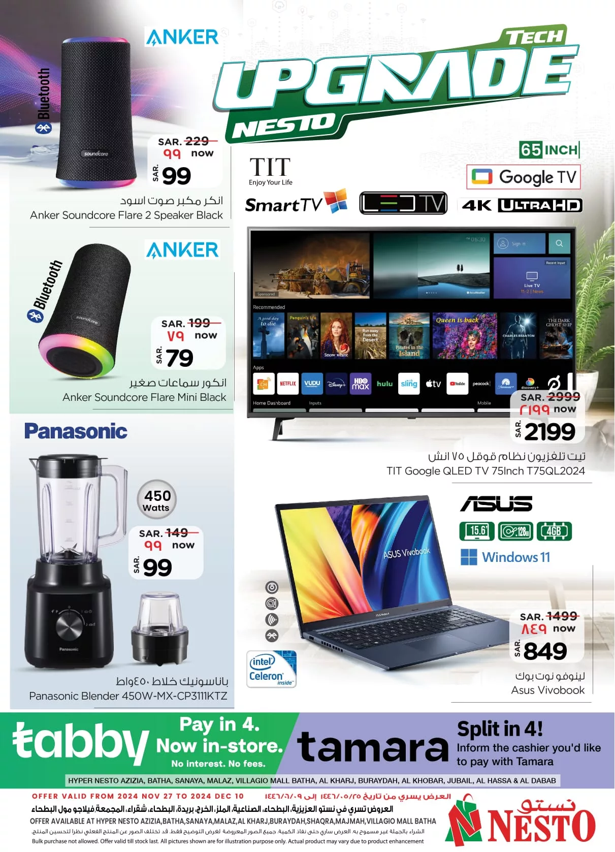 عروض نستو الرياض لهذا الأسبوع الاربعاء 27 نوفمبر 2024 تأتي بمزيج مذهل من الأجهزة الإلكترونية والهواتف الذكية، حيث تقدم تخفيضات كبيرة على أحدث شاشات التلفزيون وأفضل الأجهزة المنزلية التي تلبي احتياجات الأسرة. يتميز العرض بتوفير شاشات ذكية بتقنيات 4 كي وأندرويد بأسعار تنافسية
