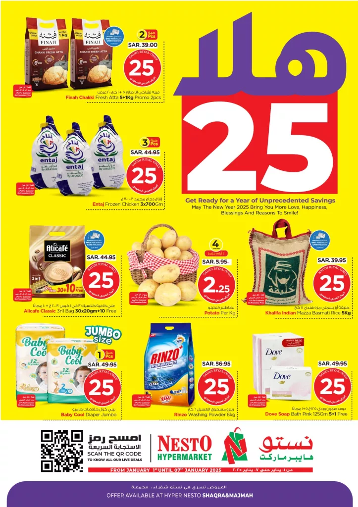 عروض نستو القصيم الأربعاء 1 يناير 2025 تقدم لكم تخفيضات استثنائية على مختلف المنتجات التي تحتاجها الأسرة و تشمل العروض خصومات على اللحوم الطازجة والمأكولات البحرية بالإضافة إلى الفواكه والخضروات المزروعة محليا كما تقدم تخفيضات على المواد الغذائية الأساسية مثل الأرز والسكر والزيوت