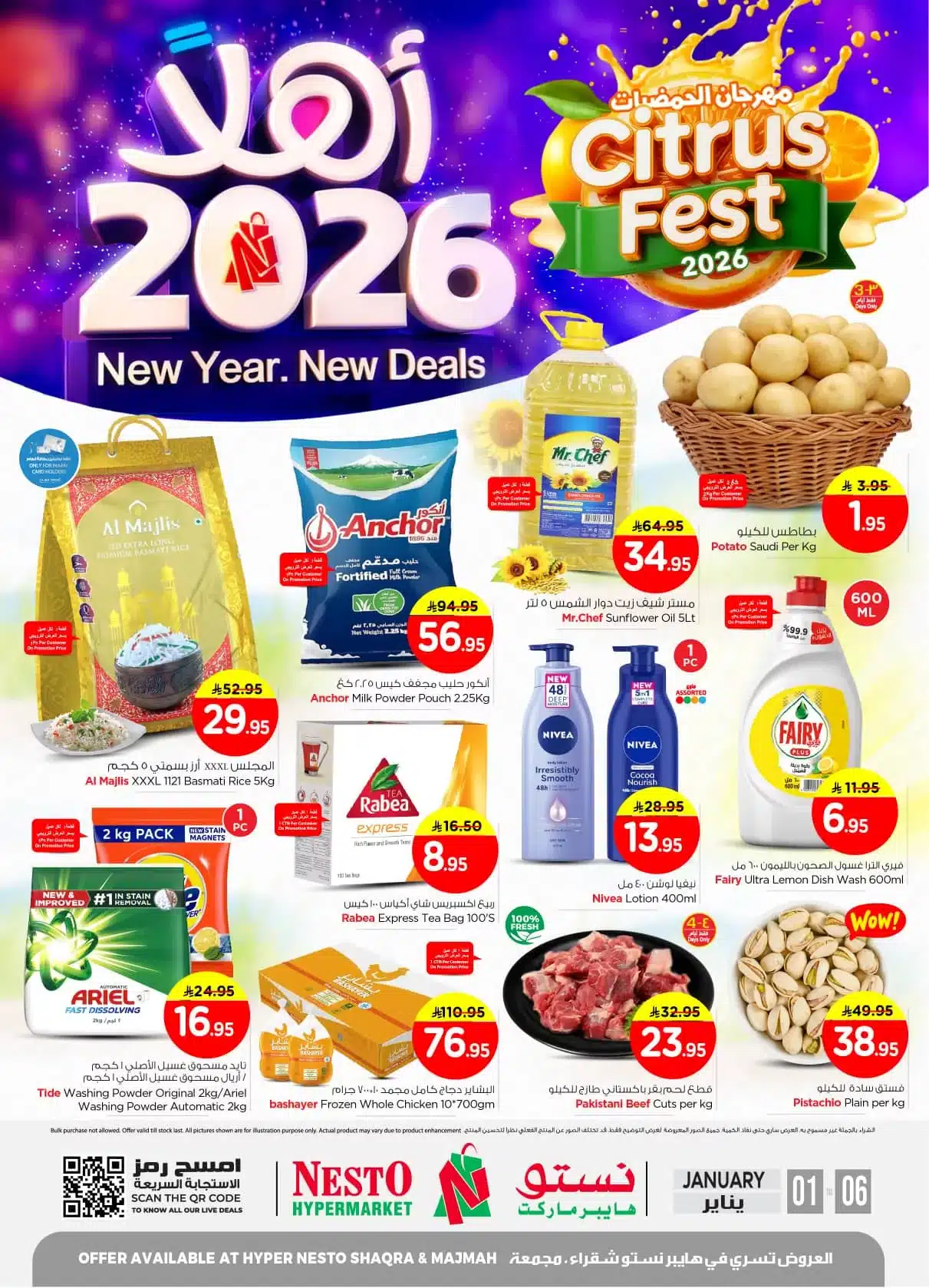 عروض نستو القصيم الأربعاء 11-7-1447هـ الموافق 31 /12/2025 و تبدأ بالأجهزة المنزلية و تضم افضل الماركات من الخلاطات و القلايات الكهربائية و الافران و بتوفر كمان تشكيلة من المنتجات الغذائية و اللحوم الطازجة و باسعار تنافسة مناسبة للجميع بمناسبة العام الجديد فقط تابعونا ليصل اليكم كل جديد