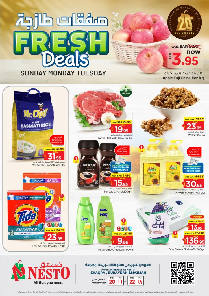 عروض نستو القصيم الاحد 20 اكتوبر 2024 تقدم مجموعة مميزة من المنتجات الطازجة والمأكولات بأفضل الأسعار في السوق مع تركيز خاص على اللحوم الطازجة مثل لحم الجمل و لحم العجل والدجاج كما تحتوي العروض على أصناف متنوعة من المكسرات والفواكه المجففة