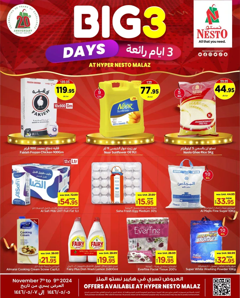 عروض نستو الملز تشمل خصومات على السلع الأساسية مثل الأرز والسكر والمعكرونة، مع عروض على المكسرات والفواكه المجففة. كما تتوفر خصومات على مستحضرات التجميل والأجهزة المنزلية الصغيرة مثل المحامص وآلات صنع العصير مما يجعلها وجهة مثالية لتسوق يلبي جميع الاحتياجات اليومية.
