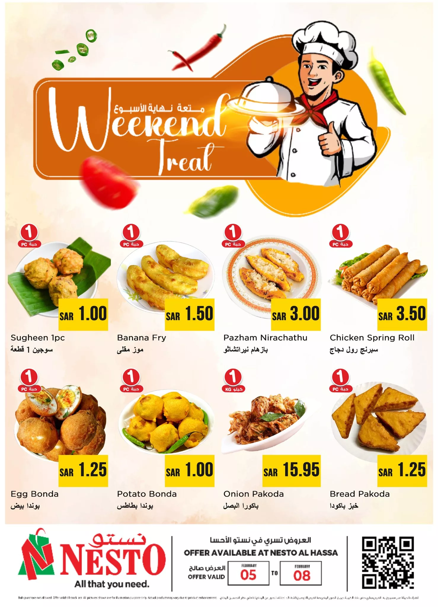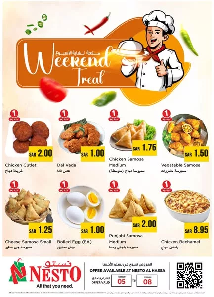 استمتعوا مع نستو الأحساء بأشهى المأكولات بأسعار لا تُقاوم ضمن عروض نهاية الأسبوع الرائعة! تقدم نستو مجموعة مميزة من الأطباق الجاهزة والوجبات السريعة التي تناسب كافة الأذواق، لتجعل نهاية أسبوعك مليئة بالنكهة والجودة. العروض متاحة من 5 فبراير وحتى 8 فبراير 2025.