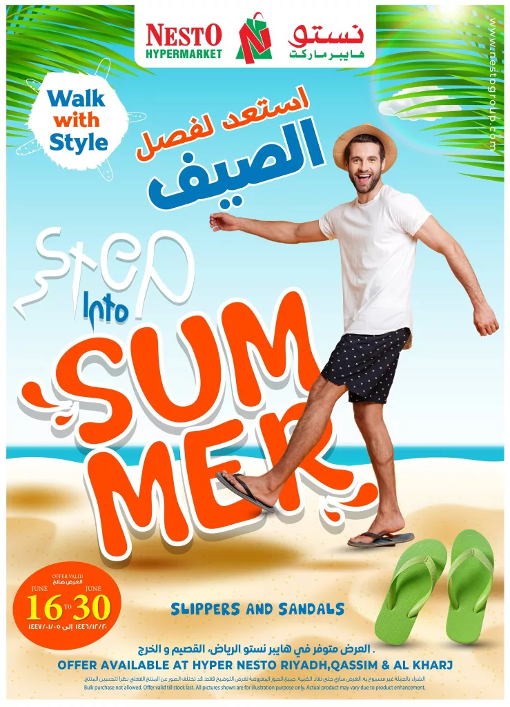مع بداية موسم الصيف في السعودية، تبدأ كبرى الهايبر ماركت في إطلاق أقوى العروض التي تلبي حاجات الأسرة وتوفر أفضل الخيارات بأسعار تنافسية. ومن بين هذه العروض الرائعة، تأتي عروض نستو هايبر ماركت التي تستهدف هذا الموسم بإطلالة جديدة من الشباشب والصنادل الصيفية المناسبة للكبار والصغار بأسعار تبدأ من 10 ريال فق