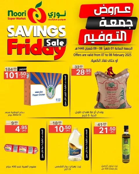 تسري العروض من يوم الجمعة الساعة 01 ظهرًا 07 فبراير إلى يوم السبت 08 فبراير 2025م، أو حتى نفاذ الكمية.