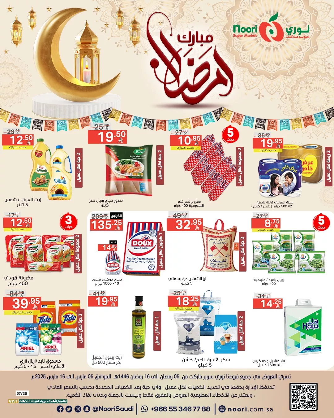 عروض نوري هايبر ماركت تقدم لكم خصومات مذهلة على مختلف المنتجات الغذائية، المنظفات و العناية الشخصية والمستلزمات اليومية مع حلول شهر رمضان المبارك و يمكنكم الاستفادة من أفضل العروض على اللحوم و الأرز السكر ومنتجات الألبان بأسعار تنافسية تناسب جميع العائلات.