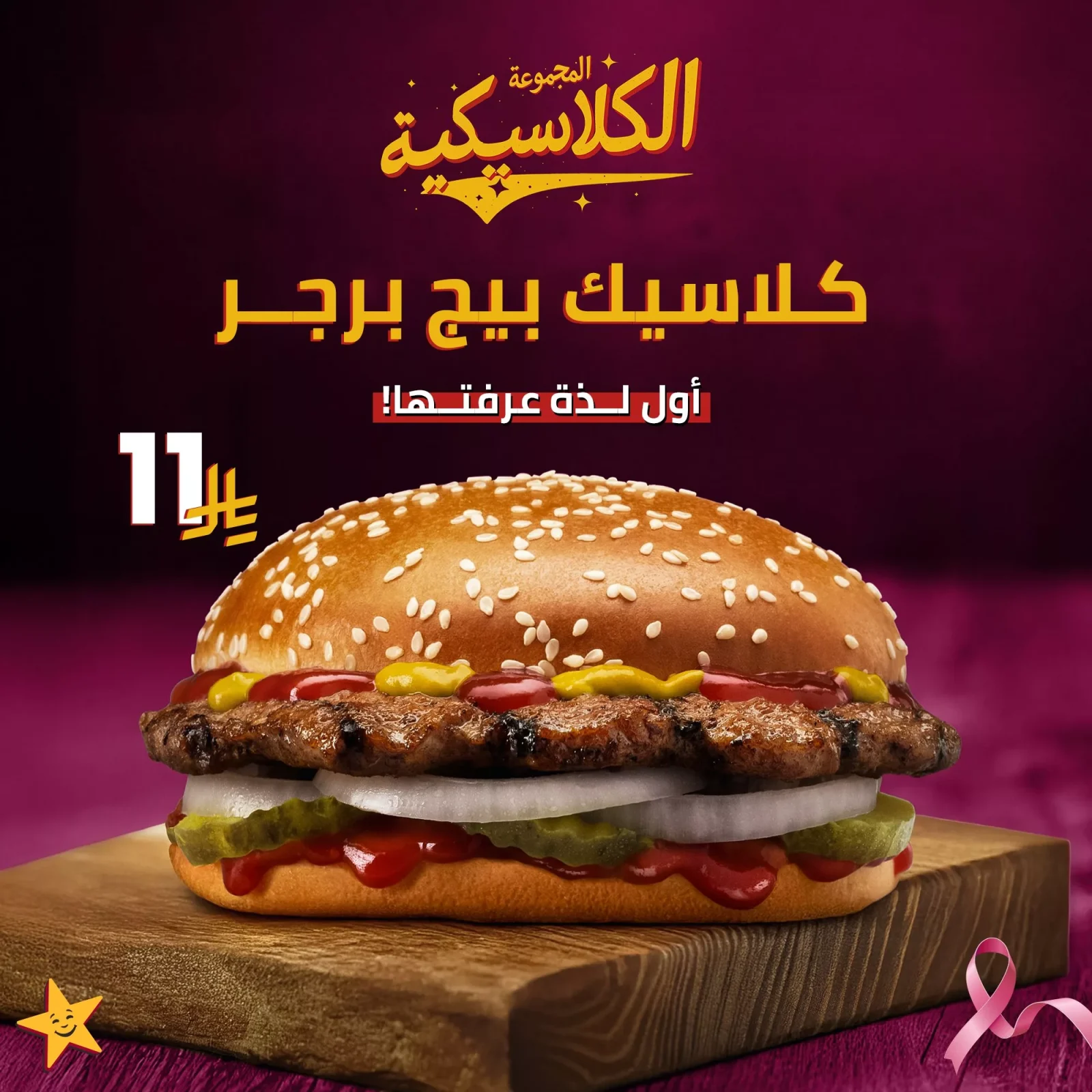 عروض هارديز السعودية على كلاسيك بيج برجر بسعر 11 ريال فقط أول لذه عرفتها في هارديز العرض لفتره محدوده