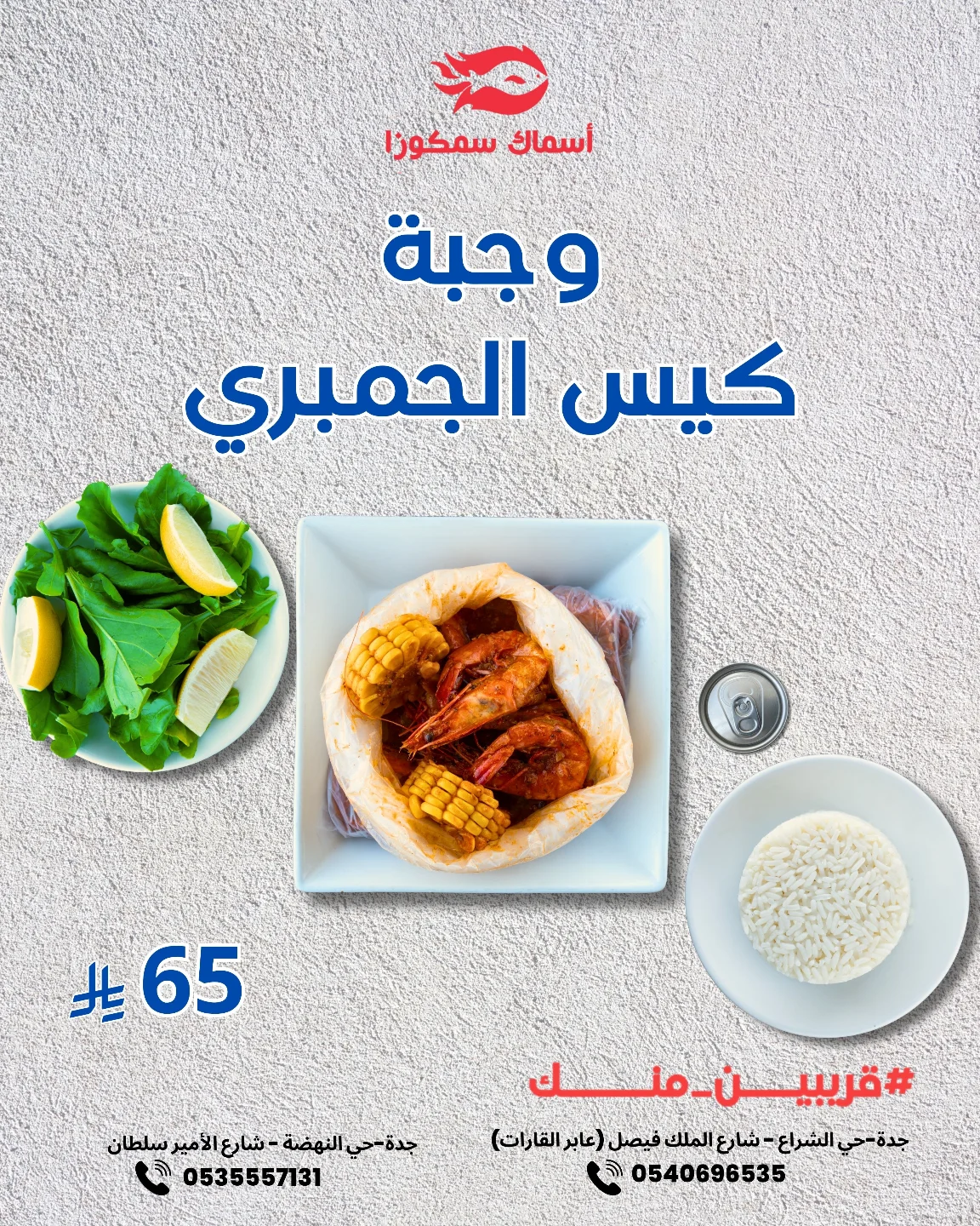 - يقدم أسماك سمكوزا عروض وجبة كيس الجمبري بسعر 65 ريال فقط