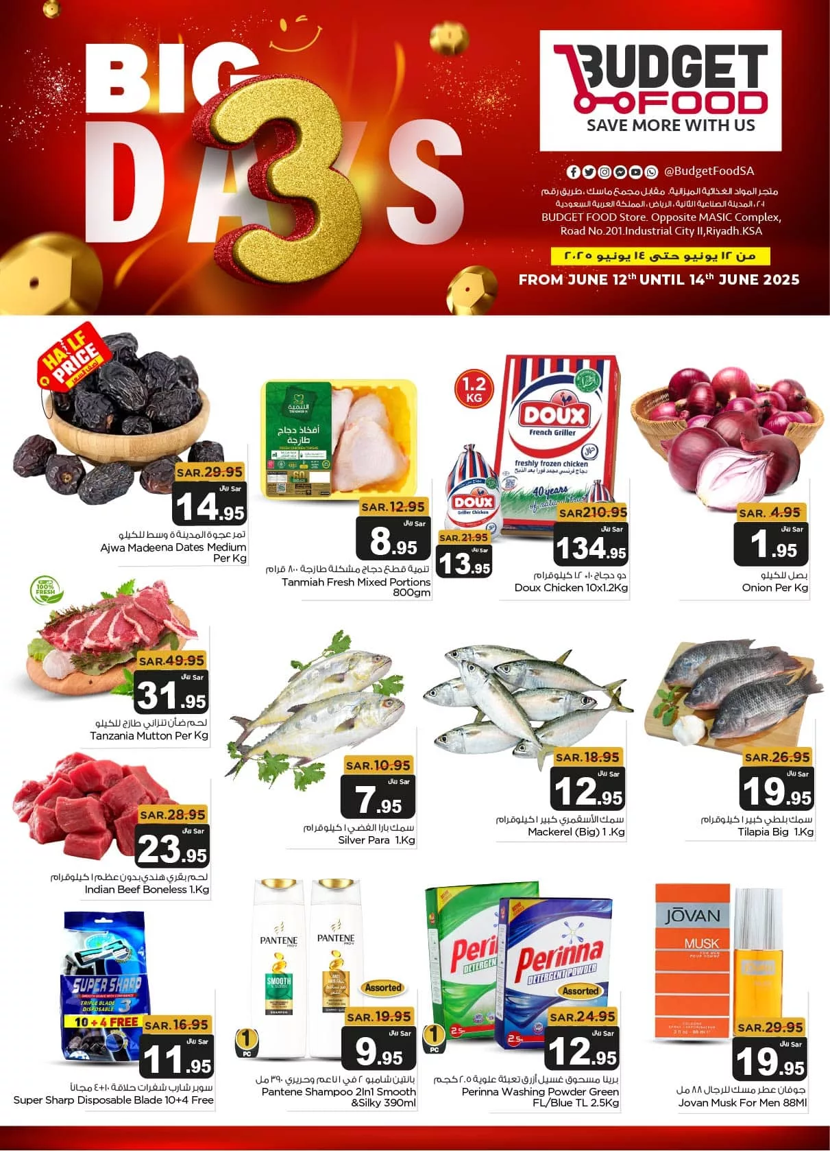 يسري هذا العرض من يوم 12 يونيو 2025 وحتى يوم 14 يونيو 2025 فقط، في فرع Budget Food بالمنطقة الصناعية الثانية – الرياض
