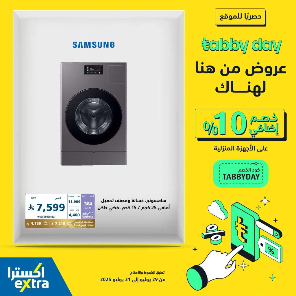 تقدم لكم عروض اكسترا عروض حصرية تحت اسم Tabby Day و التي سوف تقدم فيها تخفيضات حصرية و خصم على الاجهزة المنزلية حتى 10% لا تفوتوا هذه العروض المميزه من اكسترا السعودية اليوم 31 يوليو 2025
