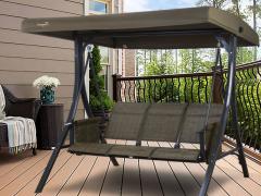 نشعر بالاسترخاء بمجرد النظر إلى هذه الأرجوحة الخارجية! تأتي المظلة المقاومة للطقس والمقعد سهل التنظيف بخمسة ألوان (الأسود والبيج والبني والأحمر والفيروزي)، وهي مثالية للساحات الخلفية والباحات والحدائق.