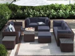 هل ترغب في إنشاء مساحة خارجية مُجهزة جيدًا مثل غرفة المعيشة الخاصة بك؟ ابدأ بهذه المجموعة المتنوعة المكونة من 12 قطعة، الآن بخصم 67%، والتي يمكن تهيئتها بأي طريقة تريدها. أحب بشكل خاص إضافة طاولتين جانبيتين، بالإضافة إلى طاولة القهوة – حيث توفر مساحة كبيرة للمشروبات والأطباق. اختر من بين ألوان متعددة من القماش القياسي أو قماش Sunbrella.