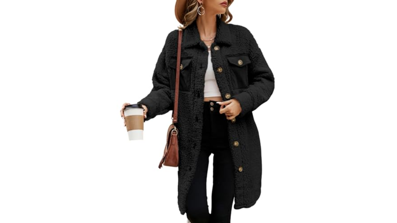 يشبه هذا Topper جينيفر لدرجة أننا كنا نغفر لك على القيام بمزدوج. تجعل الصور الظلية الصوفية ومواد الصوف شيربا الناعمة أنها مثالية للتكبد في تلك الصباح الباردة. بالإضافة إلى ذلك ، تضيف الجيوب والأصفاد المتناقضة لمسة ممتعة تجعلها أكثر خصوصية.