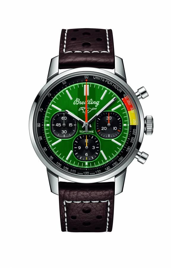 تنفرد ستينيات القرن الماضي بكونها فترة زاخرة بالتجارب، والمرح، والحرية، والطاقة. سواء كان الناس يتجولون على دراجة نارية، أو يقودون سيارة رياضية، فلا بد من عيش الحياة إلى أقصاها. وقد شعر ويلي بريتلينغ بسرعة الوتيرة السائدة آنذاك فقرّر تصميم كرونوغراف غير تقليدي يحاكي حيوية العصر، وأطلق عليه اسم توب تايم Top Time. ولا يزال هذا التقليد المفعم بالحيوية مستمراً حتى اليوم. بالفعل، تتعاون علامة بريتلينغ Breitling مع بعض من أروع وأبرز الأسماء في مجال صناعة السيارات لابتكار تصاميم توب تايم Top Time المتميّزة لديها. وأصبح الجيل الأول من طراز فورد موستانغ، الذي تم إنتاجه في الفترة ما بين 1964 و1974، السيارة المفضّلة لدى الجميع في أميركا خلال ستينيات القرن العشرين. وعلى الرغم من الاستمرار في صناعة هذه الأسطورة الحية حتى اليوم، يعرف عشاق السيارات أن أروعها على الإطلاق كانت تلك الطرازات الأولى التي عكست روح التحرر في الستينيات. وتتوافر ساعة توب تايم B21 فورد موستانغ Top Time B21 Ford Mustang بألوان هذه السيارة الكلاسيكية، وتتميز بسوار جلدي مثقوب، بالإضافة إلى مقياس للسرعة وموانئ ثانوية تتزيّن بألوان متباينة وشكل شبه دائري يعيد إلى الذاكرة وحدات القياس في لوحة القيادة الكلاسيكية.