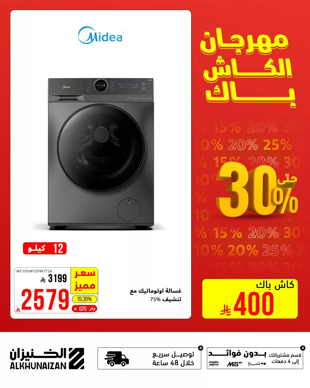عرض مهرجان الكاش باك من الخنيزان يوفر تخفيضات مميزة تصل إلى 30٪ على مجموعة واسعة من الأجهزة الكهربائية والمنزلية الرائدة من علامات تجارية شهيرة مثل LG، HITACHI، TCL , Midea وVestel. العرض ساري حتى 30 يوليو 2025 ويشمل خصومات كبيرة مع كاش باك يصل حتى 500 ريال سعودي