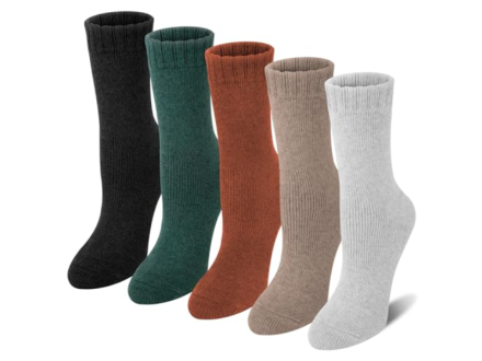 مصنوعة من مزيج من الصوف والقطن والبوليستر، هذه الجوارب السميكة تمنحك الدفء الفائق المطلوب للتغلب على الشتاء. تأتي بمقاس واحد يناسب مقاسات الأحذية من 5 إلى 9 ولديك 16 لونًا ونمطًا للاختيار من بينها (تختلف الأسعار حسب اللون).