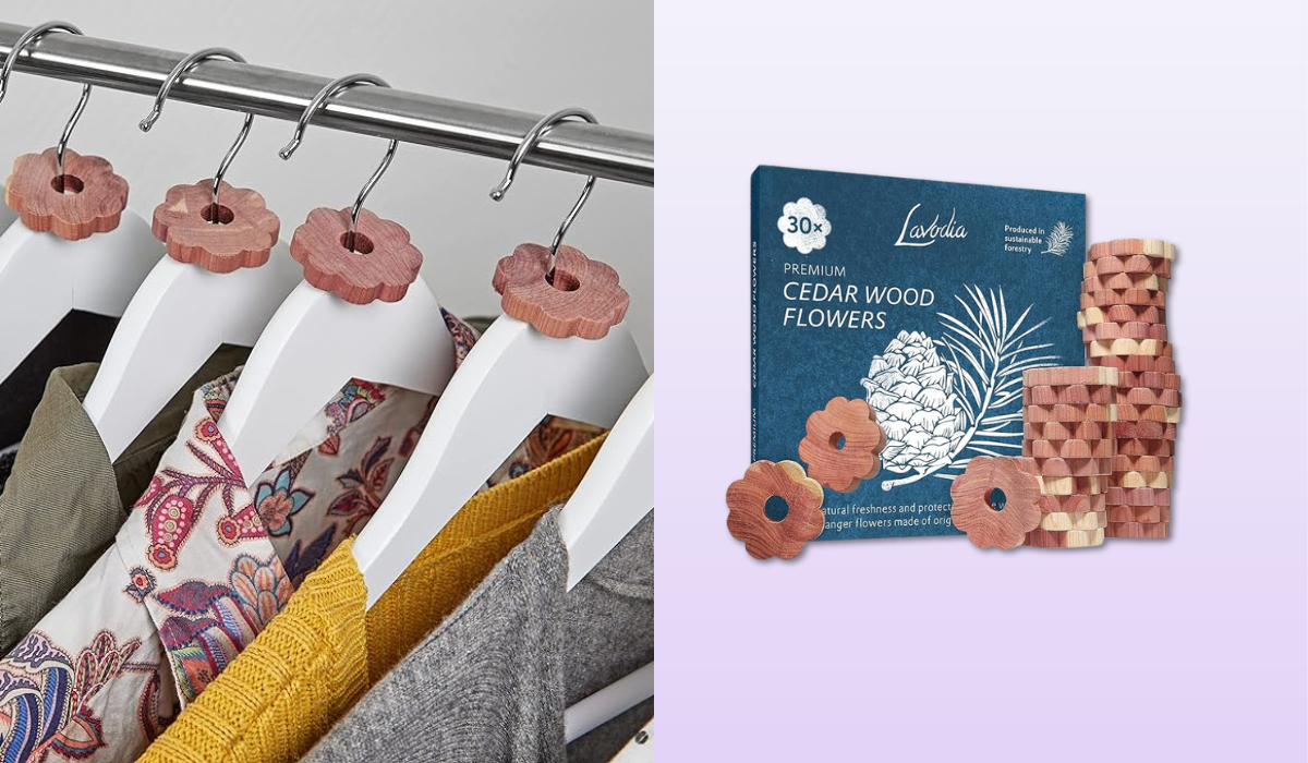والخبر السار هو أن العث يكره كتل الأرز. يوجد زيت طبيعي في خشب الأرز يطرد الحشرات، وله رائحة خشبية تشبه رائحة الكافور قليلاً وهي أكثر متعة من رائحة النفتالين الكريهة التي تنتجها جدتك. ما يجعل زهور Lavodia Cedar Wood Flowers مميزة للغاية هو وظيفتها المزدوجة. تتميز بشكل زهرة جميلة مع وجود ثقب في المنتصف – وهذا يعني أنه يمكنك تمريرها من خلال خطاف علاقة الملابس أو يمكنك رمي القليل منها في الدرج. تميل رائحة الأرز إلى التلاشي مع مرور الوقت، لكن تشتمل المجموعة على قرص سنفرة يمكنك استخدامه لإحيائها.