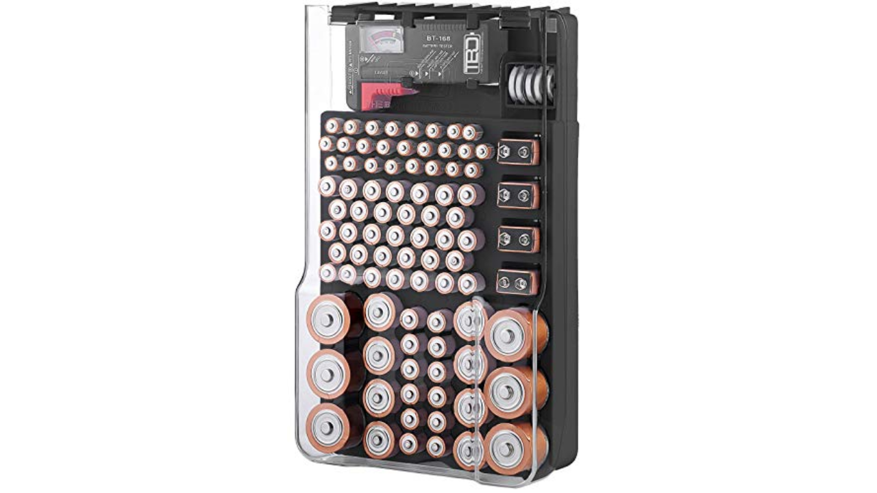 جارور المهملات؟ ما درج غير المرغوب فيه؟ تخزن هذه الحاوية الشفافة ما يصل إلى 93 بطارية، ويضمن جهاز الاختبار القابل للإزالة أنك لا تمسك ببطارية فارغة.