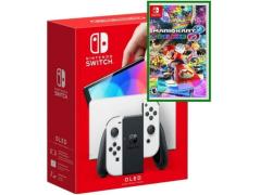وحدة التحكم Nintendo Switch OLED موديل White Joy-Con وحزمة الألعاب الفاخرة “Mario Kart 8”.