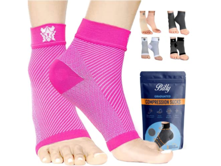 جوارب Bitly، التي تأتي بخمسة ألوان مختلفة، تحدد جميع المربعات. يستخدمون الضغط للضغط بلطف على مركز قدميك للمساعدة في تخفيف الألم. هذه الجوارب سهلة الاستخدام ماصة للرطوبة، لذلك يمكنك ارتداؤها تحت الجوارب الأخرى أو ببساطة ارتدائها كما هي دون القلق بشأن تعرق أصابع القدم. حتى أنها توفر القليل من الدعم الإضافي للكاحل.