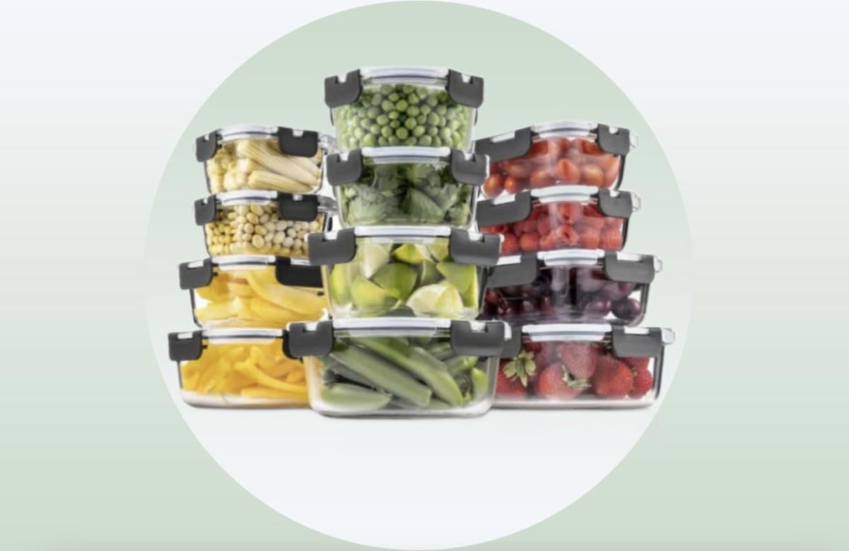 تشتمل مجموعة تخزين الطعام هذه على حاويات زجاجية بتسعة أحجام مختلفة مع أغطية بلاستيكية منسقة خالية من مادة BPA.