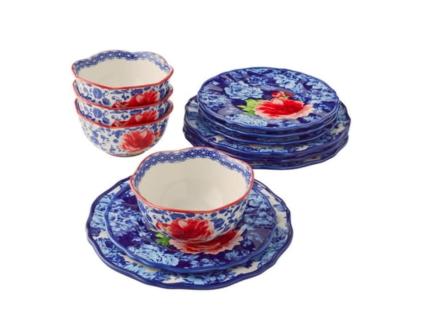 مجموعة أطباق الأطباق الساحرة المستوحاة من الطراز العتيق هذه تكفي لأربعة أشخاص ويمكن ارتداؤها أو ارتداؤها حسب المناسبة. تحافظ تفاصيل الحافة الصدفية واللون الأزرق الكلاسيكي على المظهر التقليدي، بينما يمنح تصميم الزهور الحمراء لمسة غير متوقعة من السحر الريفي. إنها آمنة للاستخدام في غسالة الأطباق والميكروويف أيضًا.