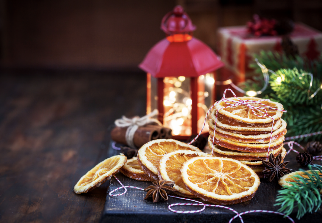 يقول باجيل: “بالنسبة للحرف اليدوية، فإن إكليل الحمضيات محلي الصنع المعلق فوق الموقد أو العتبة يبدو ساحرًا ويرحب بالضيوف برائحة مشرقة ومبهجة وحارة”. كما تلاحظ جليوينسكا، كل ما تحتاجه هو شرائح الحمضيات المجففة وعيدان القرفة (ربما بقايا من الموقد الخاص بك)، وبعض الخيط أو الشريط والإبرة. قم بالتناوب بين تمرير الخيط من خلال الثقوب الموجودة في شرائح الحمضيات مع لف الخيط حول أعواد القرفة.