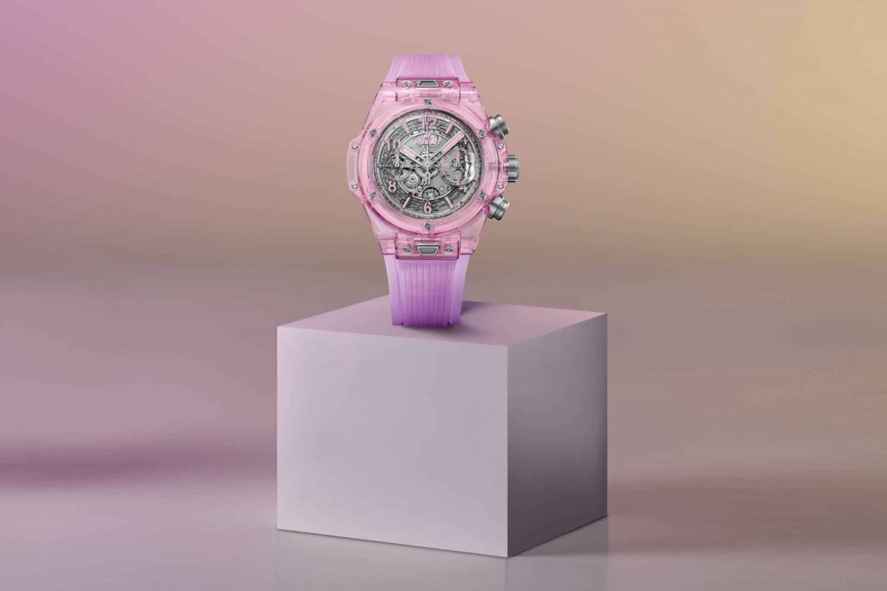 للمرة الأولى، أطلقت الدار هذه الساعة بإصدار محدود من 100 قطعة، وطرحتها بحلّة تزدان بالصفير الزهري الفاتح والشفاف، لتكسر بها قواعد صناعة الساعات. وتماشياً مع روح “هوبلو” الثورية التي يكتنفها التباين، ابتُكرت الساعة لكلّ عشّاق الساعات الذين يودّون الابتعاد عن المعايير القياسية، بدءاً من الرجال الذين ينشدون التألّق بلونٍ نادرٍ خارج عن المألوف، مروراً بالنساء اللواتي يعشقن القطع العملية الأكبر مقاساً بقطر 42 مم، وصولاً إلى محبّي الساعات الحصرية والآليات الظاهرة.