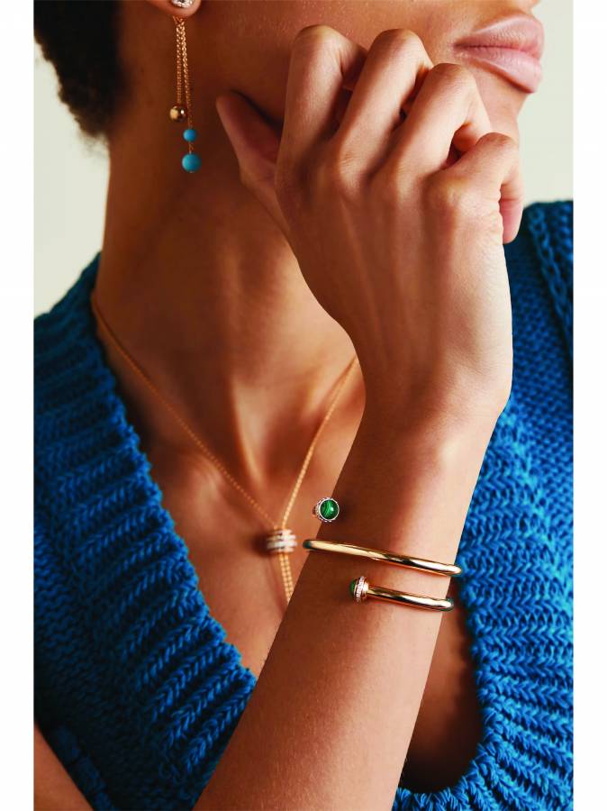 تضفي أساور Piaget الذهبية القابلة للتكديس، المستوحاة إلى الأبد من ألوان البحر الأبيض المتوسط، لمسة من الدفء المشمس على كل ما ترتديه معها.