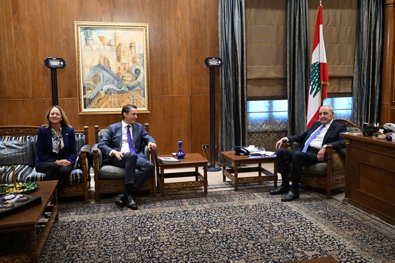 يستمر الاجتماع المنعقد في مفر الرئاسة الثانية في عين التينة بين رئيس مجلس النواب نبيه بري والموفد الاميركي آموس هوكستين منذ الحادية عشرة من قبل الظهر في حضور السفيرة الاميركية لدى لبنان ليزا جونسون ومستشار الرئيس بري علي حمدان.