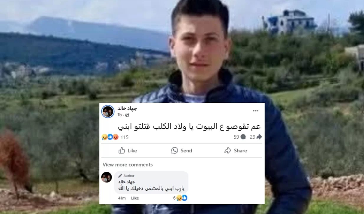 وكتب والده عبر فايسبوك: “عم تقوصو ع البيوت يا ولاد الكلب قتلتو ابني”، وأضاف في تعليق:”يارب ابني بالمشفى دخيلك يا الله”.