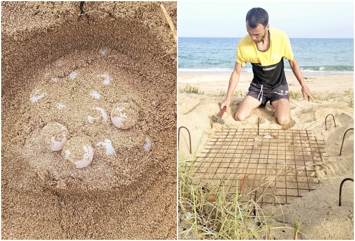 بالصور/ رصد أول عش للسلاحف البحرية المهددة من نوع ضخمة الرأس على شاطئ المنصوري