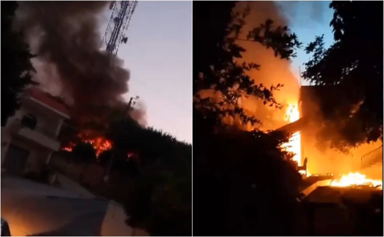 وقد اشتد الحريق جراء القصف وامتد إلى المنازل المجاورة وناشد الأهالي الدفاع المدني.