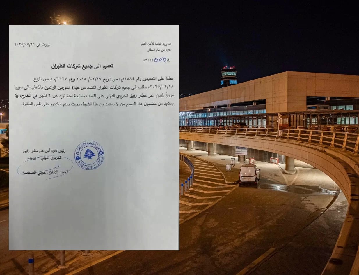أصدرت المديرية العامة للأمن العام – دائرة أمن عام المطار تعميمًا جديدًا إلى جميع شركات الطيران، طالبت فيه بالتشدد في التحقق من حيازة السوريين الراغبين بالسفر إلى سوريا عبر مطار رفيق الحريري الدولي على إقامات صالحة لمدة تزيد عن ٦ أشهر في الخارج.