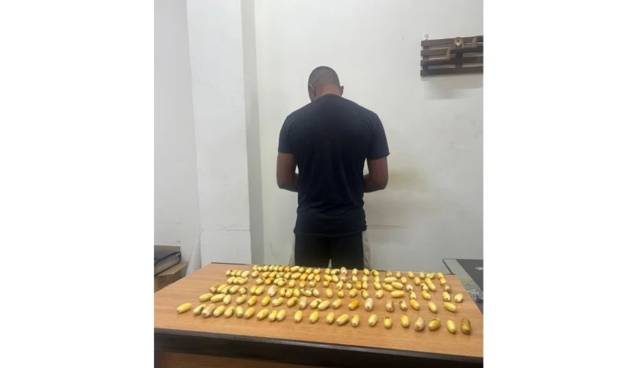باستماعه، اعترف بابتلاع كمّية من كبسولات الكوكايين، ثمّ تبيّن لاحقًا أنّ عددها يبلغ /133/ كبسولة بوزن إجمالي حوالى /1,800/ غ.