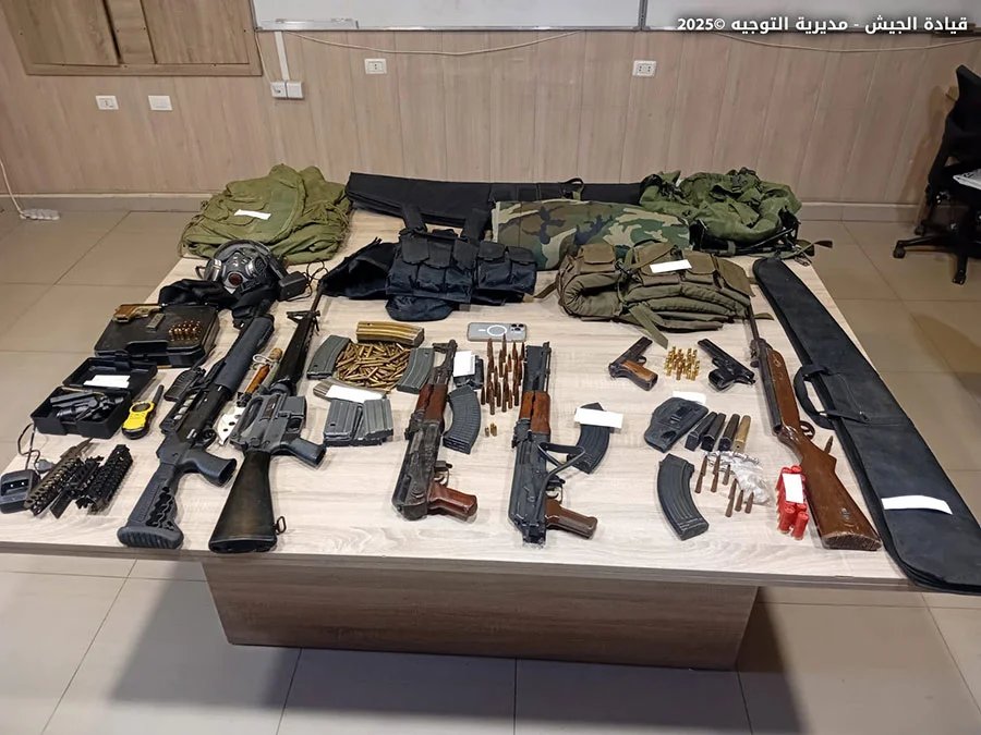 • دهم منازل مطلوبين في بلدة الدورة – الهرمل وتوقيف المواطنين: (م.ر.)، (ز.ر.)، (ح.ر.)، (ص.ر.) و(خ.ر.)، كونهم مطلوب توقيفهم بجرم المشاركة في أعمال التهريب وإطلاق النار، وضبط كمية من الأسلحة والذخائر الحربية في حوزتهم.