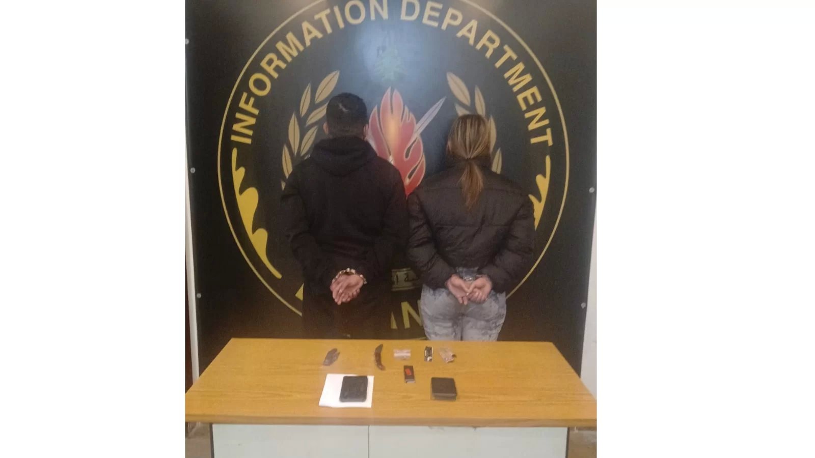 على أثر ذلك، باشرت القطعات المختصّة في شعبة المعلومات إجراءاتها الميدانية والاستعلامية، وبنتيجة الاستقصاءات والتحرّيات تمكّنت إحدى دوريّات الشعبة من توقيفهما بالجرم المشهود في محلّة طريق المطار، في أثناء ترويجهما المخدّرات، ويدعيان: