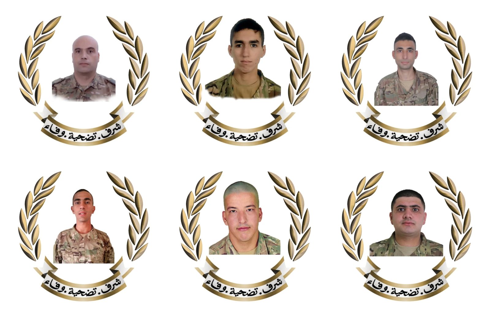 تنعى قيادة الجيش ـــ مديرية التوجيه، المؤهل أول الشهيد عباس فوزي سلهب والمجند الشهيد احمد فادي فاضل والمجند الشهيد ابراهيم خليل مصطفى والمجند الشهيد هادي ناصر الباي والمجند الشهيد محمد علي شقير والمجند الشهيد يامن الحلاق الذين استشهدوا بتاریخ 9/8/2025 جراء وقوع انفجار أثناء الكشف على مخزن أسلحة وذخائر، وذلك في وادي زبقين – صور. وفي ما يلي نبذة عن حياة العسكريين الشهداء:
