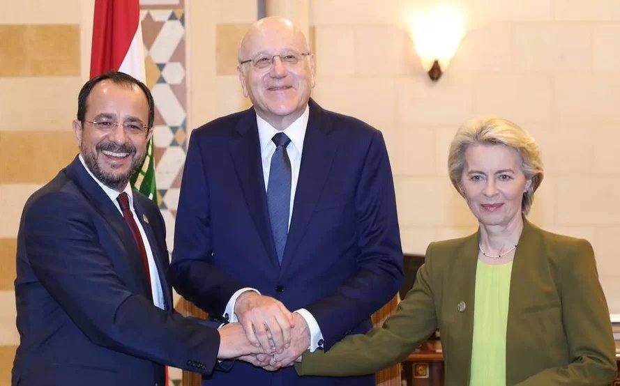 قال رئيس الحكومة نجيب ميقاتي في مؤتمر صحافي عقب المحادثات مع رئيس جمهورية قبرص نيكوس خريستودوليدس، ورئيسة المفوضية الاوروبية ارسولا فون دير لاين: “سعدنا هذا الصباح باستقبال فخامة رئيس جمهورية قبرص السيد نيكوس خريستودوليدس ورئيسة المفوضية الاوروبية السيدة أورسولا فون دير لاين، وعقدنا إجتماعا مثمرا عرضنا في خلاله العلاقات الثنائية بين لبنان ودول الاتحاد الاوروبي لا سيما قبرص، والاوضاع في المنطقة والوضع المأسوي في غزة والاعتداءات الاسرائيلية . وجددت دعوتي الاتحاد الآوروبي والعالم الى الضغط على اسرائيل لوقف عدوانها المستمر على الشعب الفلسطيني، والعمل على ارساء حل نهائي شامل وعادل للقضية الفلسطينية.وكررنا دعوتنا المحتمع الدولي للضغط على اسرائيل لوقف عدوانها المتمادي على جنوب لبنان”.