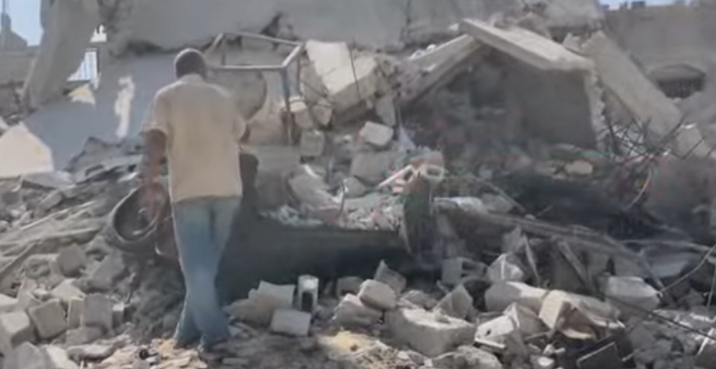 وقد عثر الكثيرون على أحياء سويت بالأرض ومعادن متشابكة وحتى أسلحة خطيرة حيث كانت توجد مباني سكنية ومنازل.