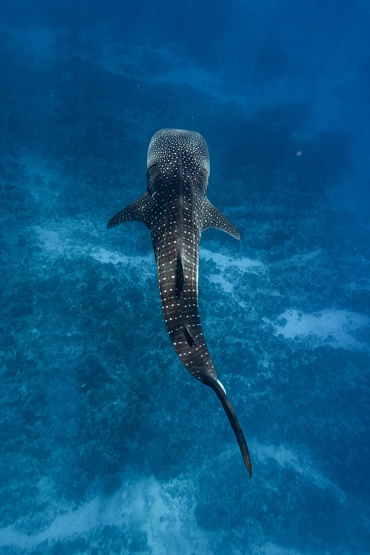 أكبر من الفيل ، فإنه يرفع من الأعماق ، ويتحرك بسرعة حتى الآن بحيث يظهر في حركة بطيئة. مع مرورها ، هناك لحظات قليلة لتتناولها في الحدبة المستديرة من زعنفةها الظهرية وعد البقع البيضاء اللؤلعية التي تم رشها عبر أجنحةها. كل لحظة من الوجود بحضور سمكة قرش الحوت هي هدية – وبمجرد أن يكون لديها ما يكفي ، فإن بعض الضربات الكسولة من ذيلها الهائل وستذهب في وميض.