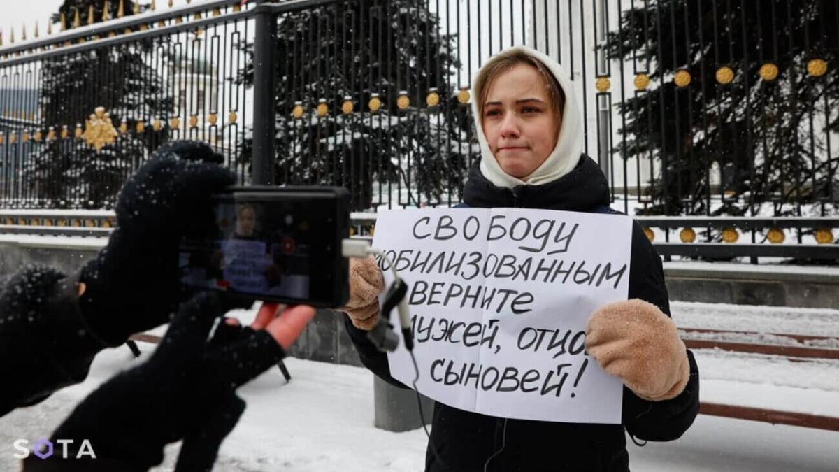 نظمت زوجات وأقارب الجنود الروس الذين تم تجنيدهم للحرب في أوكرانيا عددًا من الاعتصامات المنفردة في موسكو ووضعوا الزهور على قبر الجندي المجهول [a war memorial dedicated to the Soviet soldiers killed during World War II – ed.].