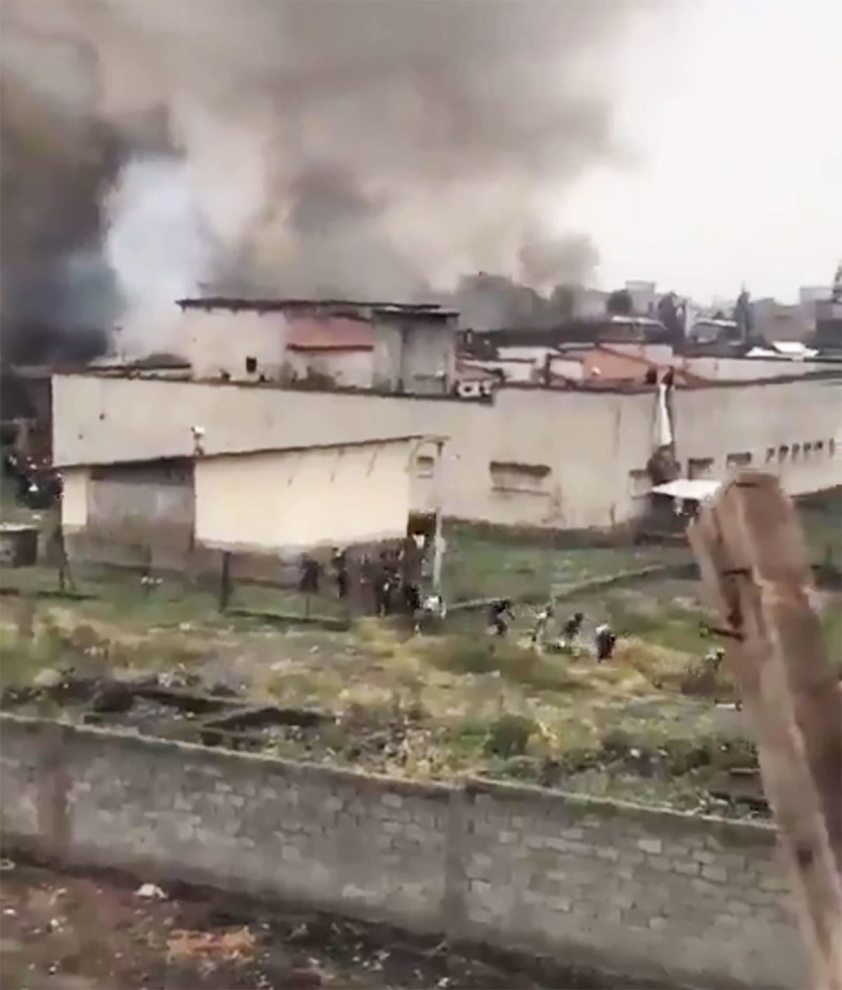 في مقطع فيديو تم نشره على X والتحقق منه بواسطة NBC News ، يمكن رؤية مئات الأشخاص يهربون من السجن باعتباره أعمدة من الدخان الأسود في مكان قريب وما يبدو وكأنه طلقات نارية.