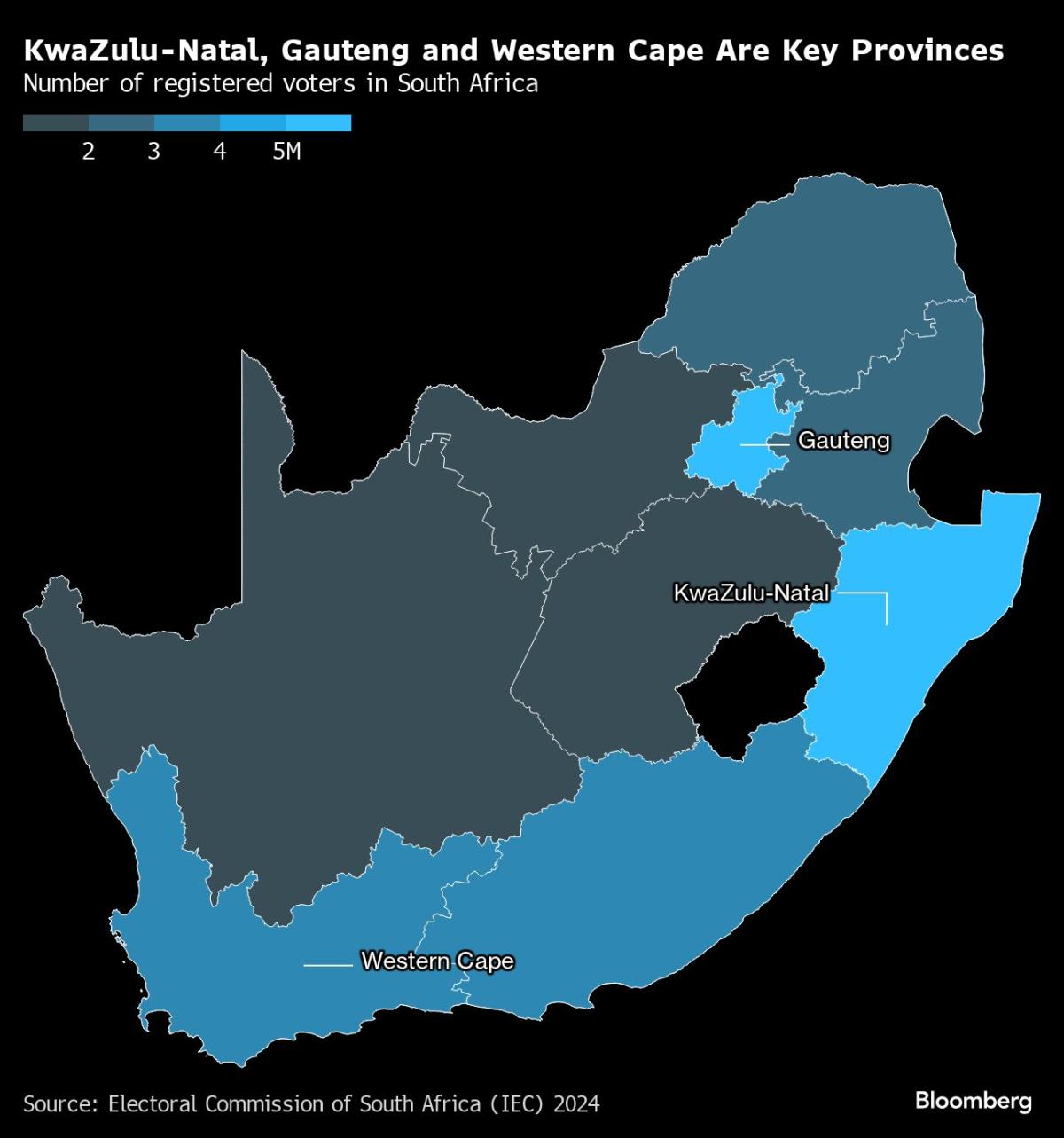 كما أن غوتنغ، وهي أصغر المقاطعات التسعة ولكن أكثرها اكتظاظاً بالسكان، تشكل أهمية بالغة لمصير حزب المؤتمر الوطني الأفريقي. وبينما يحكم الحزب المنطقة الوسطى منذ عام 1994، فقد حصل على أكثر من نصف الأصوات هناك في عام 2019، ويظهر استطلاع MarkData تراجعه إلى 41% هذا العام.