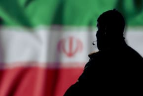 صورة توضيحية لعامل إيراني في خلفية العلم الإيراني. (الصورة الائتمان: Shutterstock)