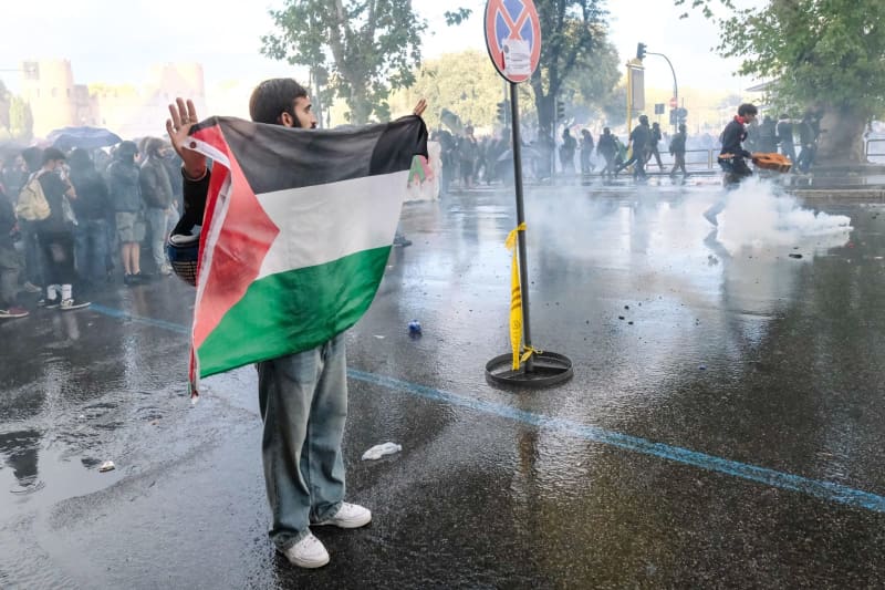 ووقعت في بعض الأحيان اشتباكات عنيفة بين المتظاهرين والشرطة خلال مظاهرة غير مرخصة مؤيدة لفلسطين في روما يوم السبت.